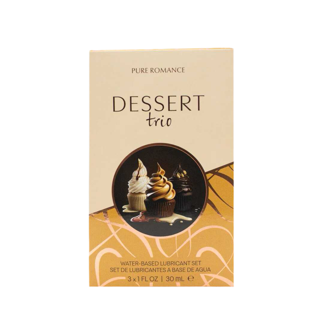 Añade algo dulce a tu noche de pasión con Dessert Trio. Este conjunto de lubricantes a base de agua cuenta con una triple ración de sabores decadentes - Chocolate Doble, Crème Brûlée y Caramelo Salado - en una sinfonía de dulzura que seguramente satisfará tus antojos.