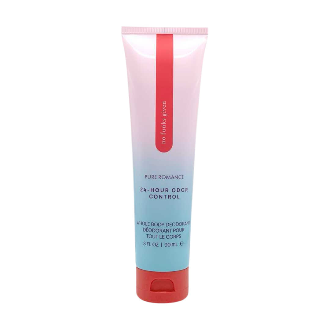Mantente seco y sin olores con No Funks Given, un desodorante para todo el cuerpo sin parabenos, sin aluminio y sin bicarbonato de sodio. Nuestra fórmula en crema suave y con pH equilibrado utiliza SymDeo® B125, un desodorante patentado que puede durar hasta 24 horas, para que pueda sentirse fresco y seguro durante todo el día. También incluye niacinamida, que ayuda a retener la humedad, minimizar la apariencia de los poros, iluminar la piel y mantenerla firme y saludable.